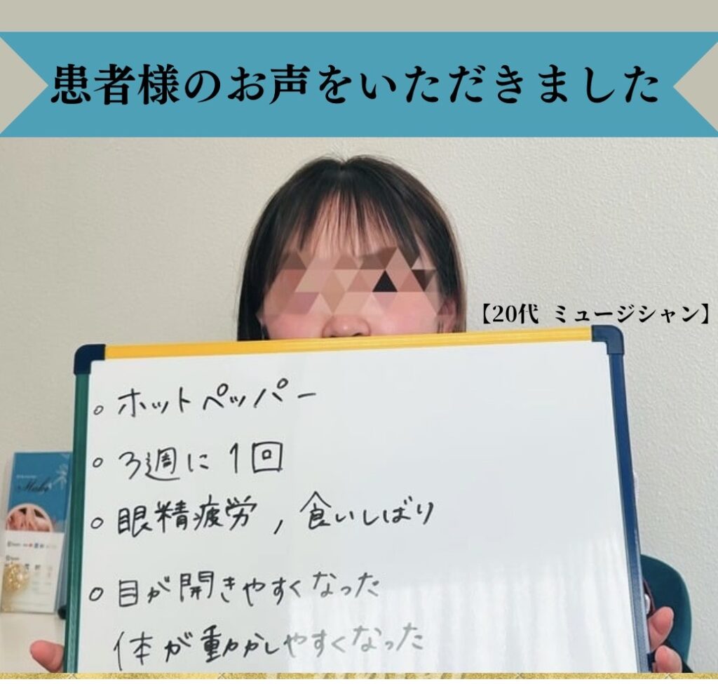 目が開きやすくなったのと身体が前よりよく動いて楽になったと嬉しい感想をもらいました(^○^)